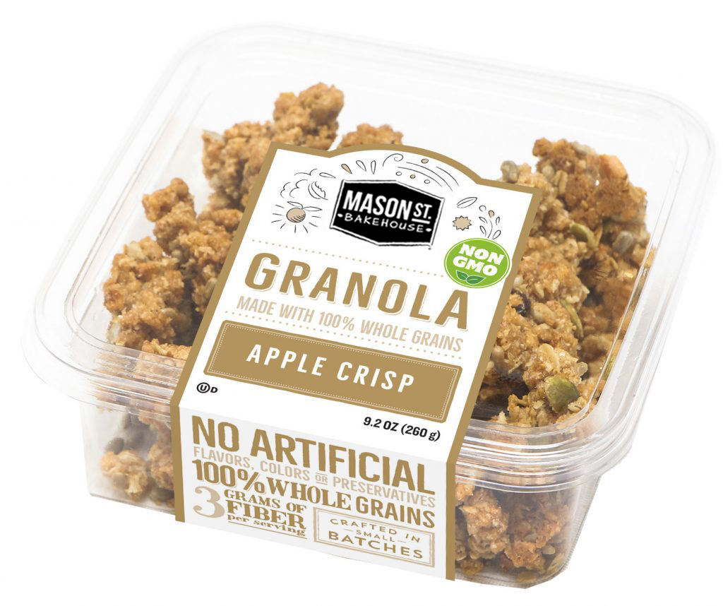 INGREDIENTS: Fruit and seeds (sunflower, apples, raisins, flax, pumpkin), whole grain rolled oats, sugar, honey, sunflower oil, crisp rice (whole grain brown rice, cane syrup, sea salt), cashews, natural flavor, almonds, walnuts, salt, spice. Contains almonds, cashews and walnuts.